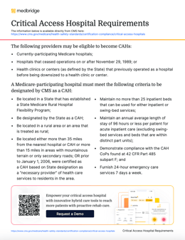 For a full list of critical access hospital requirements, download our Critical Access Hospital Requirements PDF below.