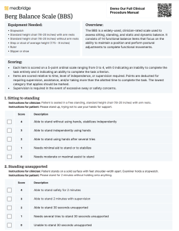 As a rehabilitation professional, you know that balance assessments are crucial resources that enhance diagnostic accuracy and improve patient outcomes, particularly for patients with conditions that affect stability and mobility. One essential tool that helps achieve these goals is the Berg balance test, which provides a standardized, objective approach to assessing balance. Using a Berg balance test PDF, like the one we've created here, can help guide you as you conduct this test.