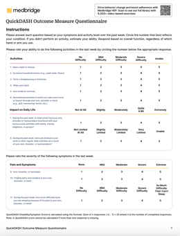Support return-to-work or activity decisions: QuickDASH scoring provides objective data to justify work modifications, discharge planning, and ongoing therapy needs.