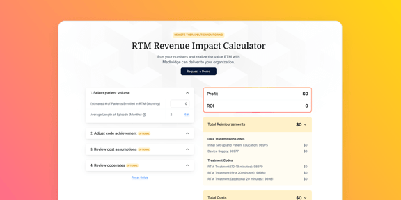 RTM can unlock new reimbursement opportunities. With Medbridge, organizations have seen $100+ more in reimbursement per episode.