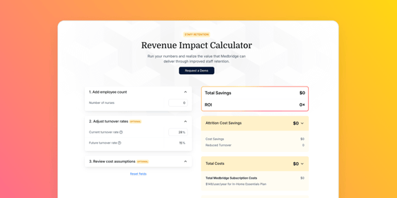 Use our interactive calculators to explore how Medbridge can improve revenue, reimbursement, and retention—based on real-world data and your own numbers.