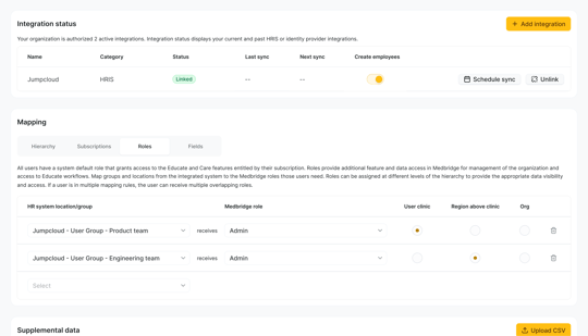 Define how roles, attributes, and user data flow into Medbridge—