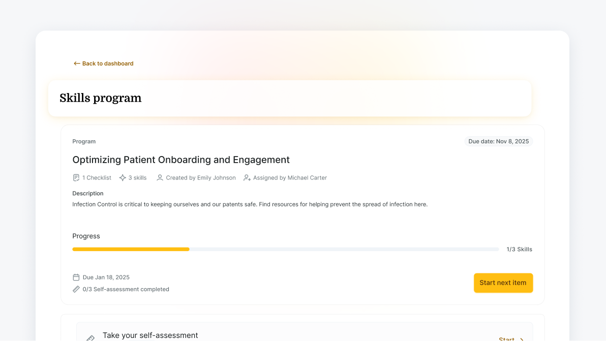 “The online format has allowed all of our locations to complete the same content without travel time or time out of the clinic. This enables our company to provide improved standard of care and consistency of service, and also decreases practice variations that are not evidence-based. We…”